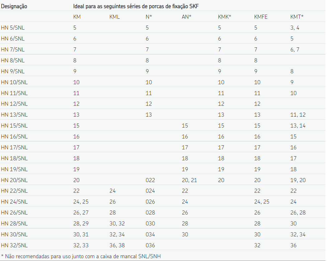 -O projeto único e exclusivo permite que a série HN/SNL seja usada dentro das caixas de mancal SKF SNL, FSNL, SNH, SE e outras.