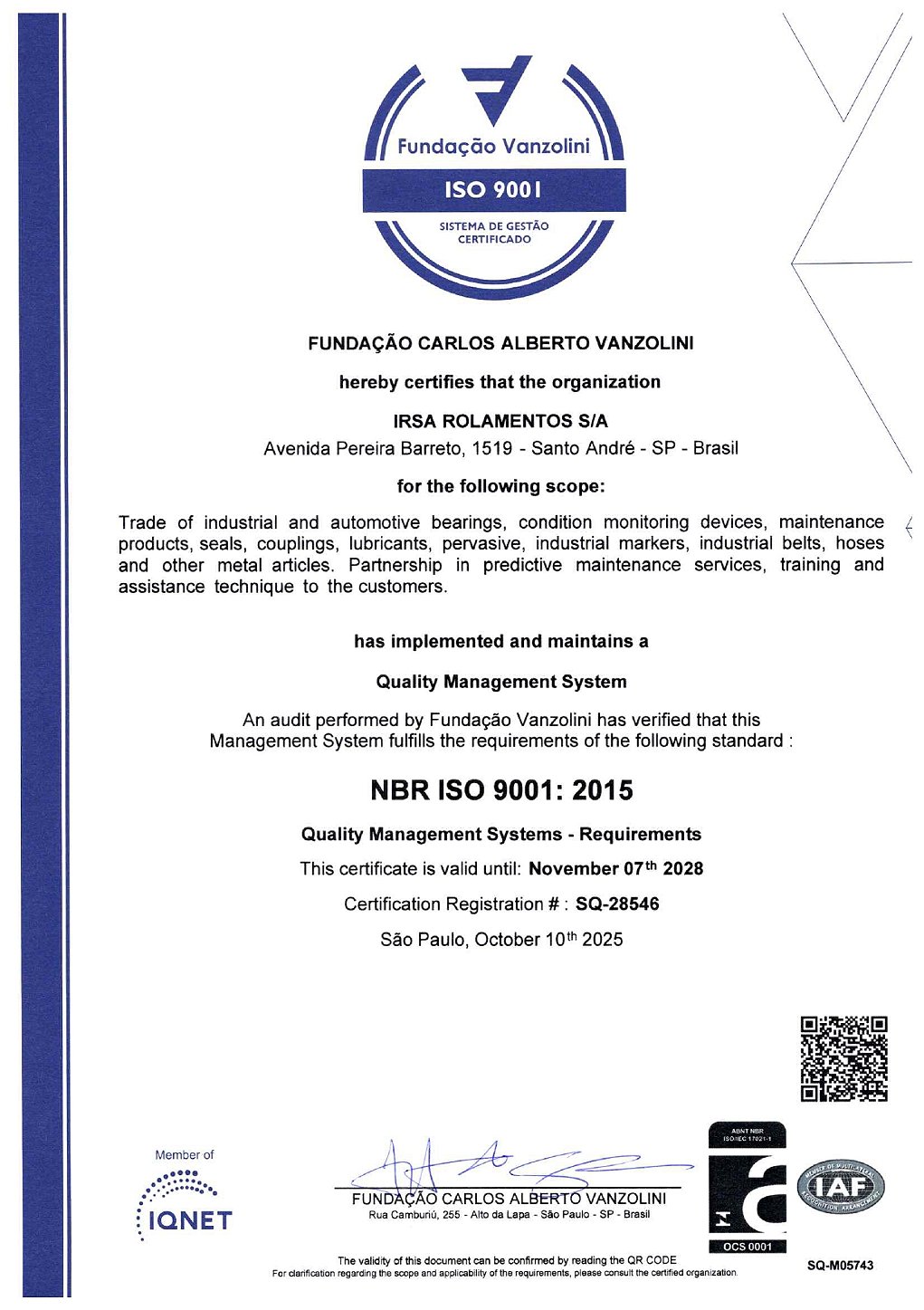 Somos uma empresa com Certificados ISO 9001, atendendo as mais exigentes normas de qualidade e investimos constantemente no aprimoramento de nossos serviços.